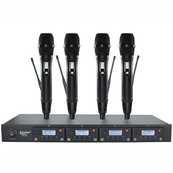 一拖四无线话筒,金属管手持,距离40-50米左右,用于会议室,多功能厅,频点可调。