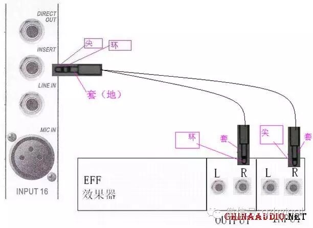 效果器与调音台的跨接在实际使用中,有三种典型的连接方法