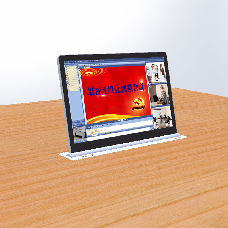 产品本身内置LED显示屏,超薄机身和铝合金精拉丝氧化面板结构,齿合式直线导轨传动方式,机械防夹手设计,一体化机身防护,外观无螺丝,产品使用安全可靠,美观大方。外置VGA、DVI、HDMI等多重信号接口和RS232/485控制接口,产品在启动时,液晶显示屏升降器从箱体内部升出桌面并自动为显示屏供电,产品设有智能仰角0-15°可调节角度功能,满足各个人群的显示屏仰角使用需要。当产品使用完成需要关闭时,显示屏自动返回升降隐藏于箱体内部并自动断开显示屏电源,起到保护显示屏并节约用电的作用。产品具有防盗、防尘、和保持桌面平整清洁,会议场所整齐有序等功能。本系列产品可按客户要求定制。